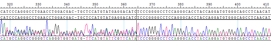 | Chr position(GRCh37) | Chr19-42384928-TCCCAGGGCCTGAACCTGGACGACTGCTCCATGTATGAGGACATC- |