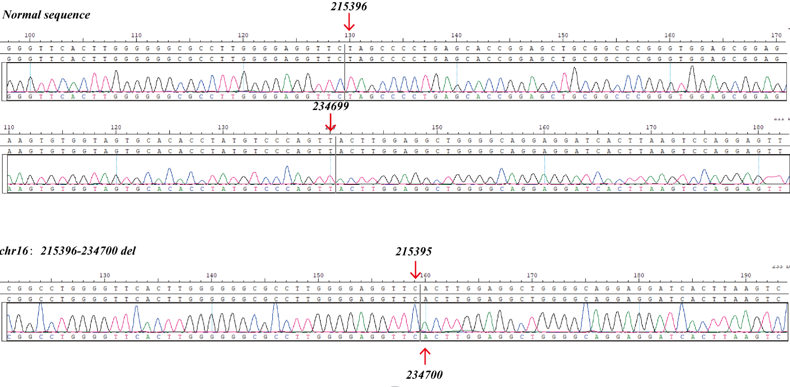 | Chr position(GRCh37) | chr16:215396-234699 del |
