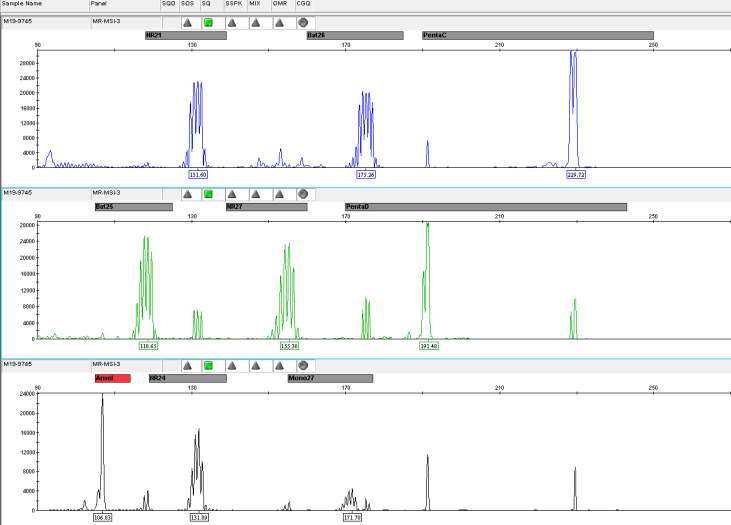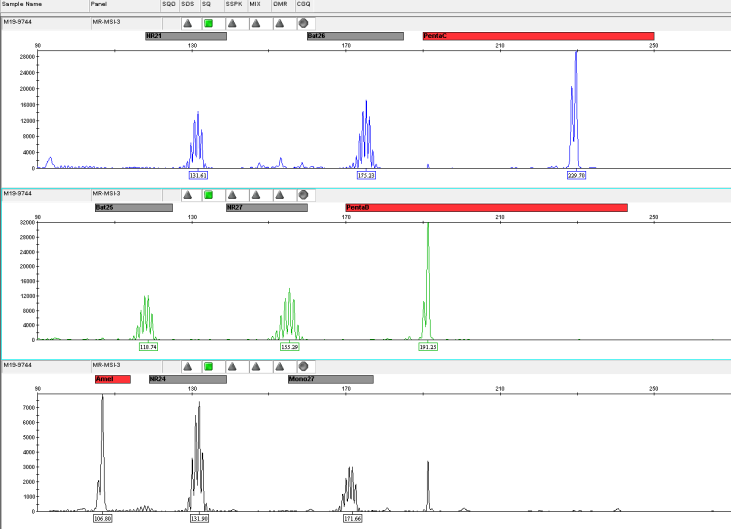 微衛(wèi)星是人類基因組的一段串聯(lián)重復序列,一般在1~6bp之間,又被稱作短串連重復(Short Tandem Repeats,STRs)或簡單重復序列(Simple Sequence Repeat,SSRs)。 微衛(wèi)星不穩(wěn)定(Microsatellite Instability,MSI)指的是微衛(wèi)星重復次數(shù)減少或者增加,微衛(wèi)星不穩(wěn)定的內在機制是錯配修復(MMR)系統(tǒng)失調,從而限制了糾正微衛(wèi)星自發(fā)的長度改變的體細胞突變的能力,體細胞突變積累,最終形成MSI。