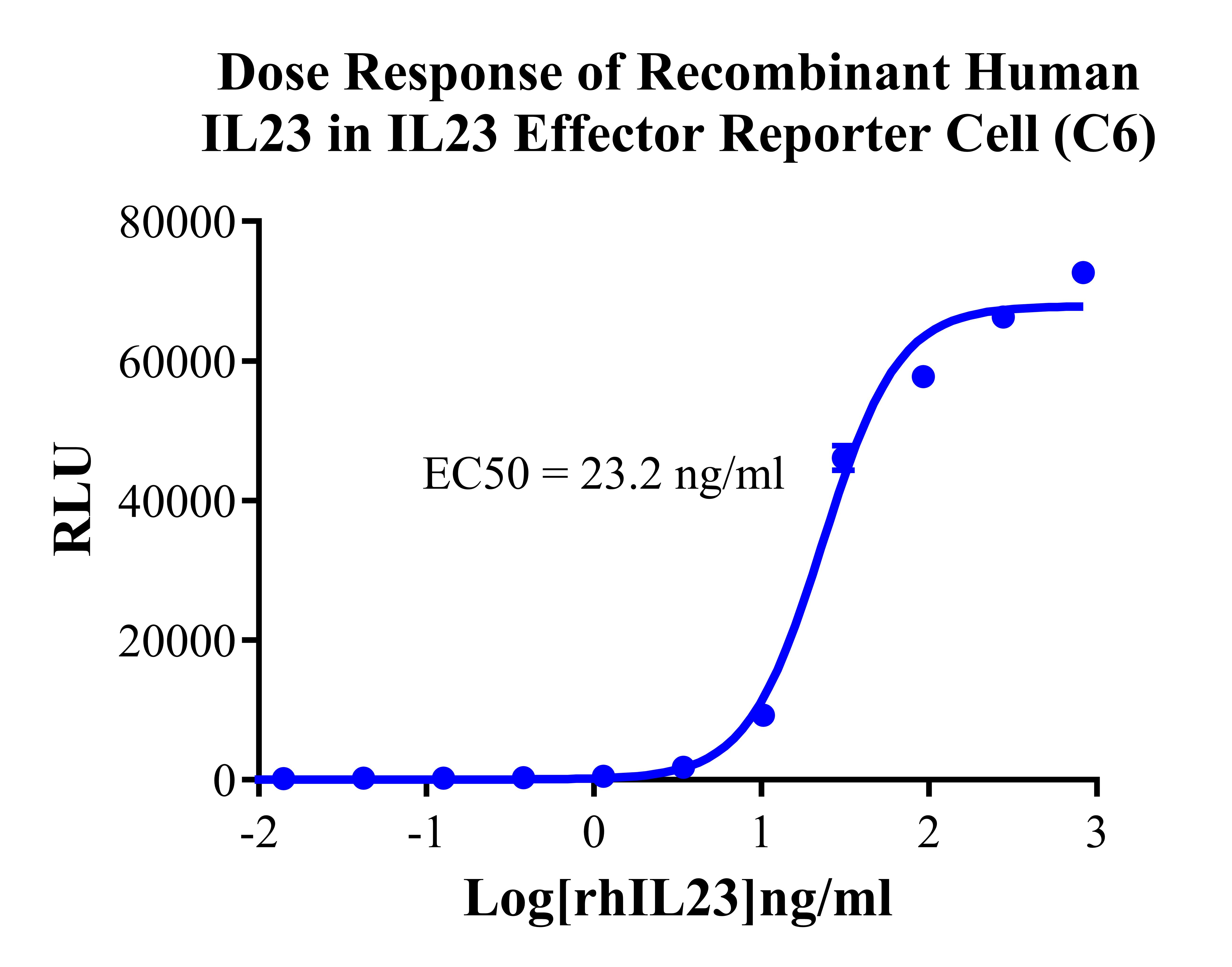 Figure 3.Dose Response of Recombinant Human IL23 in IL23 Effector Reporter Cells (C6). |