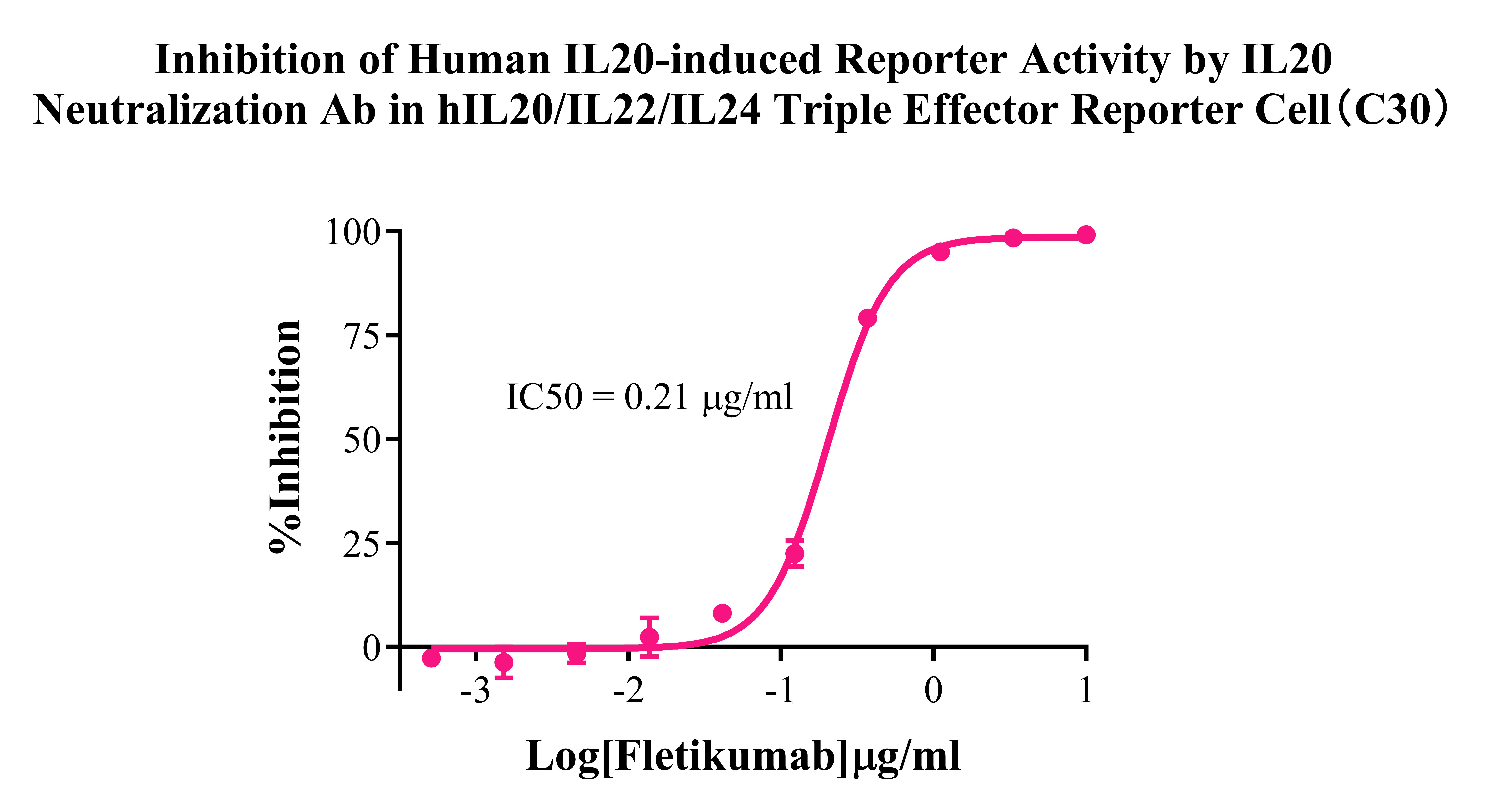 Figure 5. Inhibition of Human lL20-induced Reporter Activity by lL20 Neutralization Ab in hlL20/IL22/IL24 Triple Effector Reporter Cell(C30). |