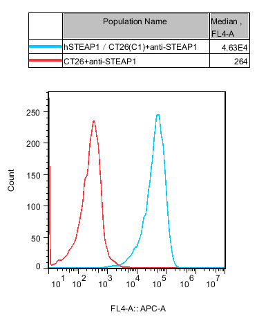 IV. Representative Data![]() Figure 1. Recombinant hSTEAP1/CT26 stably expressing hSTEAP1. |