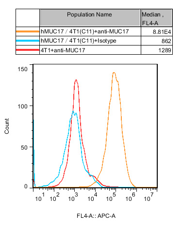 IV. Representative Data![]() Figure1.Recombinant hMUC17/4T1 stably expressing hMUC17. |