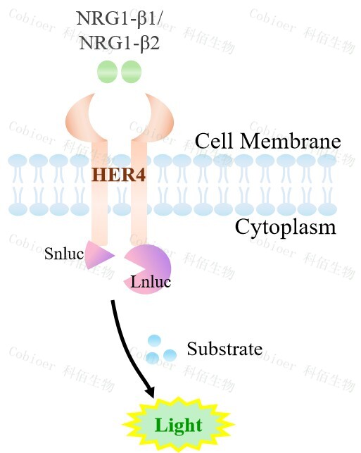 ERBB4(HER4) Dimerization CHO 報(bào)告基因藥靶模型很好的模擬了體內(nèi) ERBB4 的信號(hào)轉(zhuǎn)導(dǎo)過程,原理見下圖所示。![]() Figure 1. ERBB4(HER4) Dimerization CHO 細(xì)胞模型原理圖 |