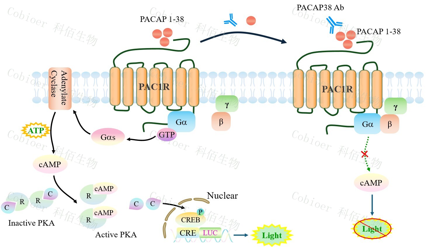 | PACAP/VIP 受體家族屬于 B 類 G 蛋白偶聯(lián)受體(GPCR),包含 PAC1R (PAC1)、 VPAC1R (VPAC1) 和 VPAC2R (VPAC2) 三個亞型,共同響應(yīng)神經(jīng)肽 PACAP(垂體腺苷酸 環(huán)化酶激活肽)和 VIP(血管活性腸肽)的調(diào)控,通過激活 Gs/cAMP-PKA 核心信號軸 (部分亞型偶聯(lián) Gq/PLC)廣泛協(xié)調(diào)神經(jīng)內(nèi)分泌、代謝穩(wěn)態(tài)與免疫調(diào)節(jié)。 PAC1R(垂體腺苷酸環(huán)化酶激活肽受體 1 型)作為 B 類 GPCR 的核心成員,特異性響 應(yīng)其內(nèi)源性配體 PACAP(垂體腺苷酸環(huán)化酶激活肽)的調(diào)控,通過偶聯(lián) Gs/Gq 蛋白激活 cAMP-PKA 及 PLC-PKC 雙信號軸,主導(dǎo)神經(jīng)可塑性調(diào)節(jié)、垂體激素分泌和疼痛信號傳導(dǎo) 等關(guān)鍵生理過程。PAC1R 在中樞神經(jīng)系統(tǒng)(尤其下丘腦、杏仁核與三叉神經(jīng)節(jié))、垂體前 葉及腸道神經(jīng)元中高表達(dá),其信號異常被證實(shí)是多重疾病的核心驅(qū)動機(jī)制:在偏頭痛中介 導(dǎo) PACAP 釋放觸發(fā) CGRP 依賴性神經(jīng)源性炎癥與血管擴(kuò)張,在創(chuàng)傷后應(yīng)激障礙(PTSD) 中通過增強(qiáng)杏仁核突觸可塑性固化恐懼記憶,在耐藥性垂體瘤中則繞過生長抑素受體信號 促進(jìn)腫瘤增殖。 |