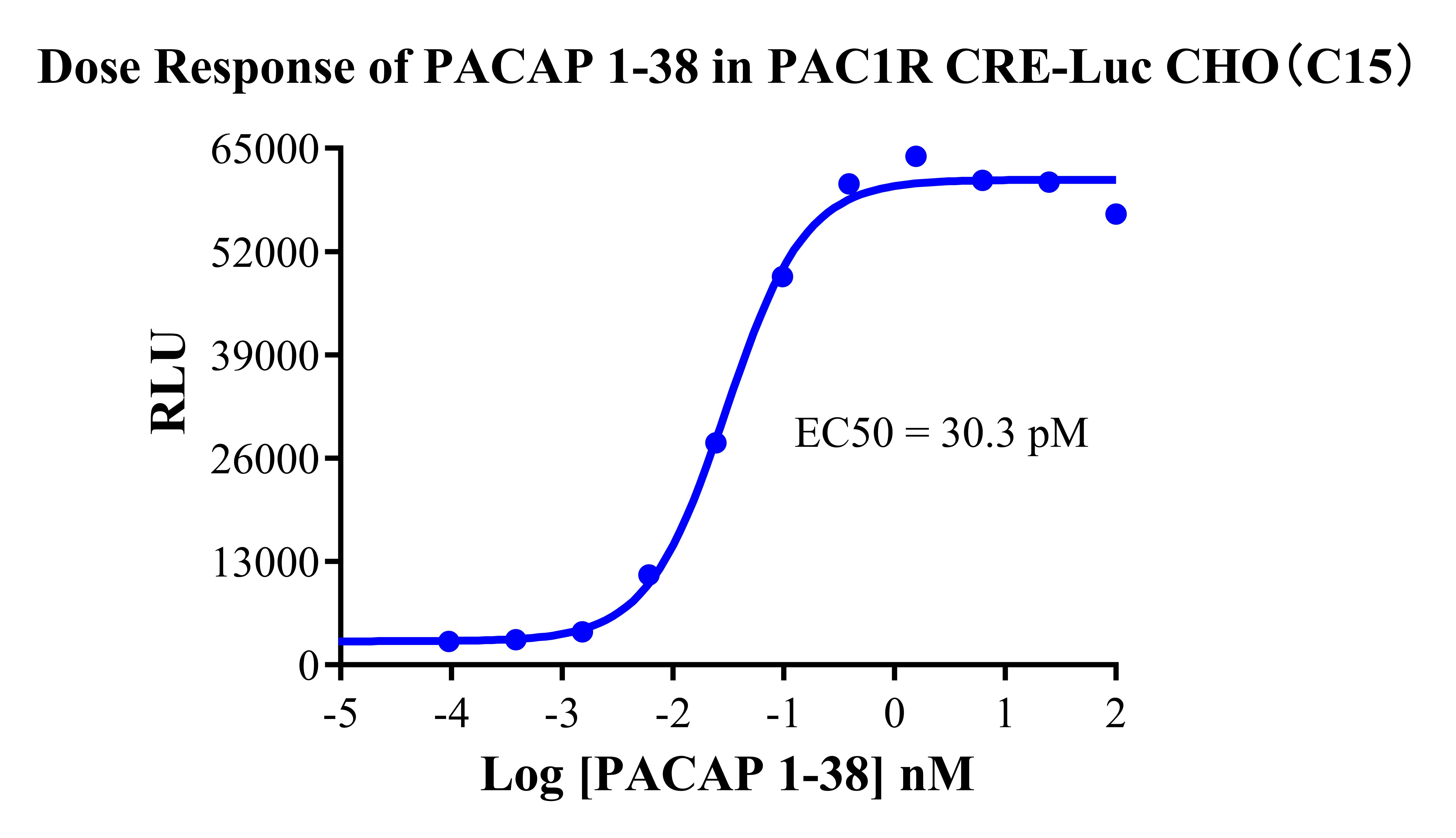 PAC1R CRE-Luc CHO 報(bào)告基因藥靶模型很好的模擬了體內(nèi) PAC1R 的信號轉(zhuǎn)導(dǎo)過程, 原理見下圖所示。![]() Figure 1. PAC1R CRE-Luc CHO 細(xì)胞模型原理圖 |