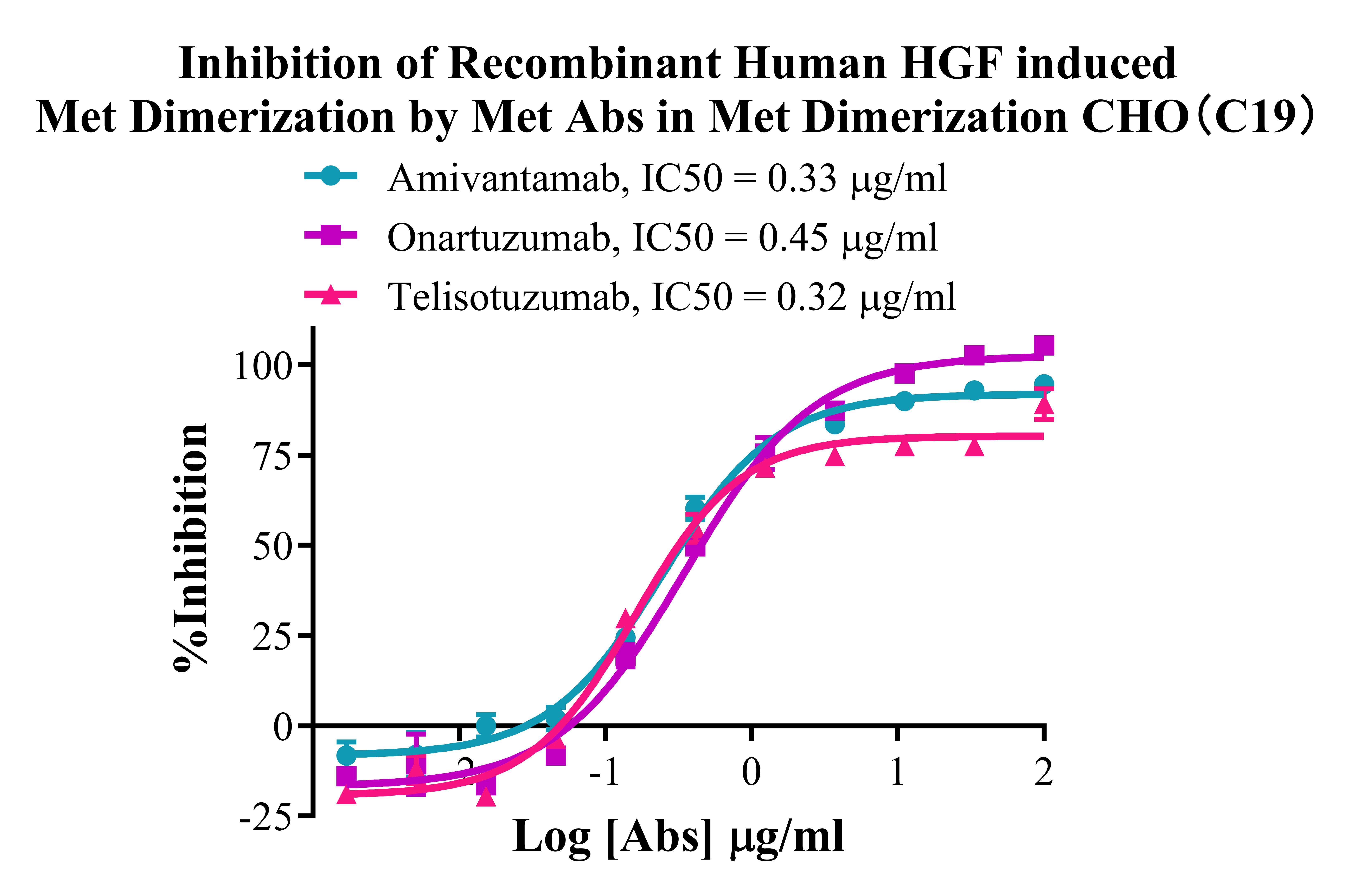 ![]() Figure 4. Inhibition of Recombinant Human HGF induced Met Dimerization by Met Abs in Met Dimerization CHO(C19). |