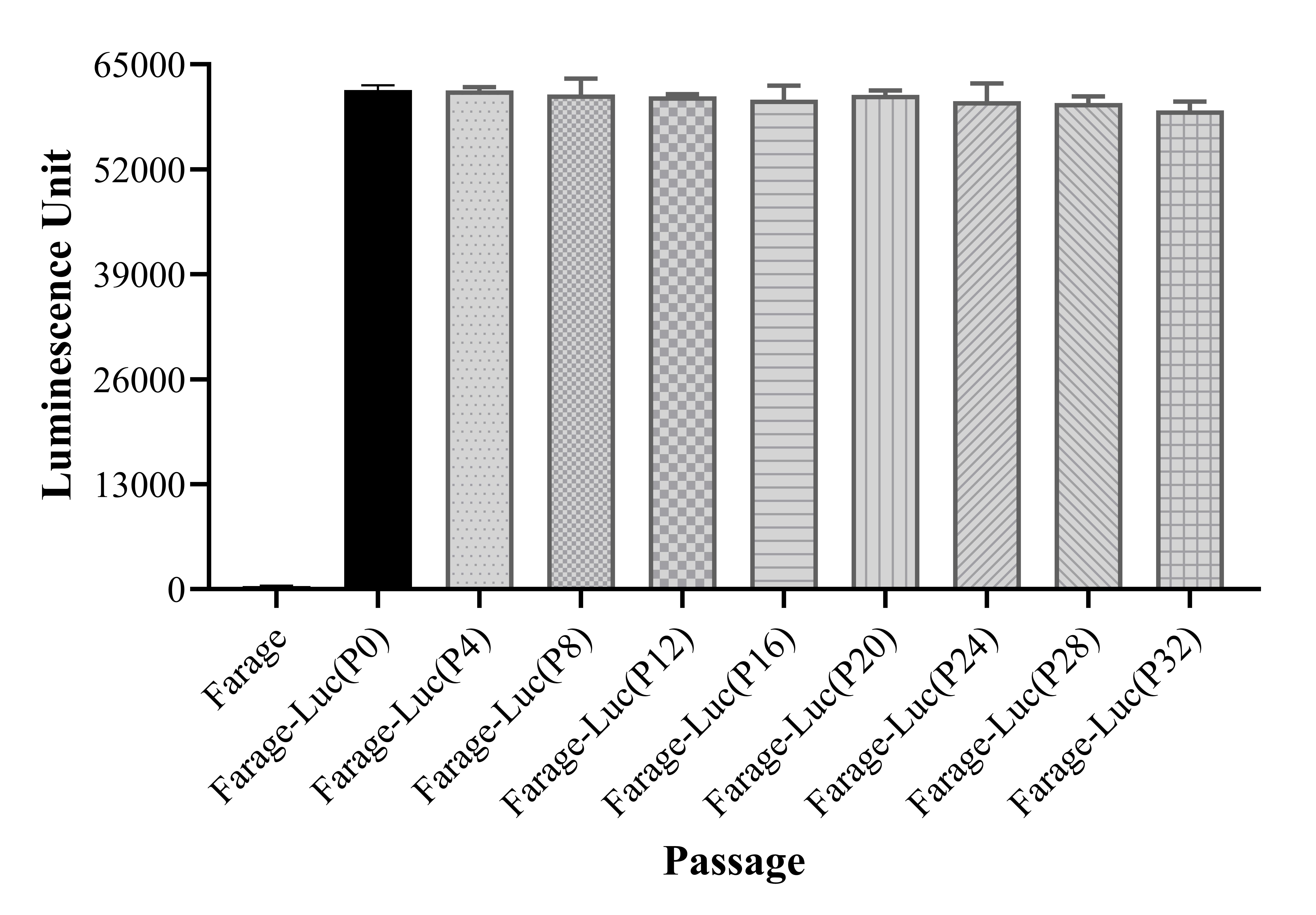 Figure 1. Stablity test results. Farage-Luc showed at least 32 passage stability with similar luminescence unit. |