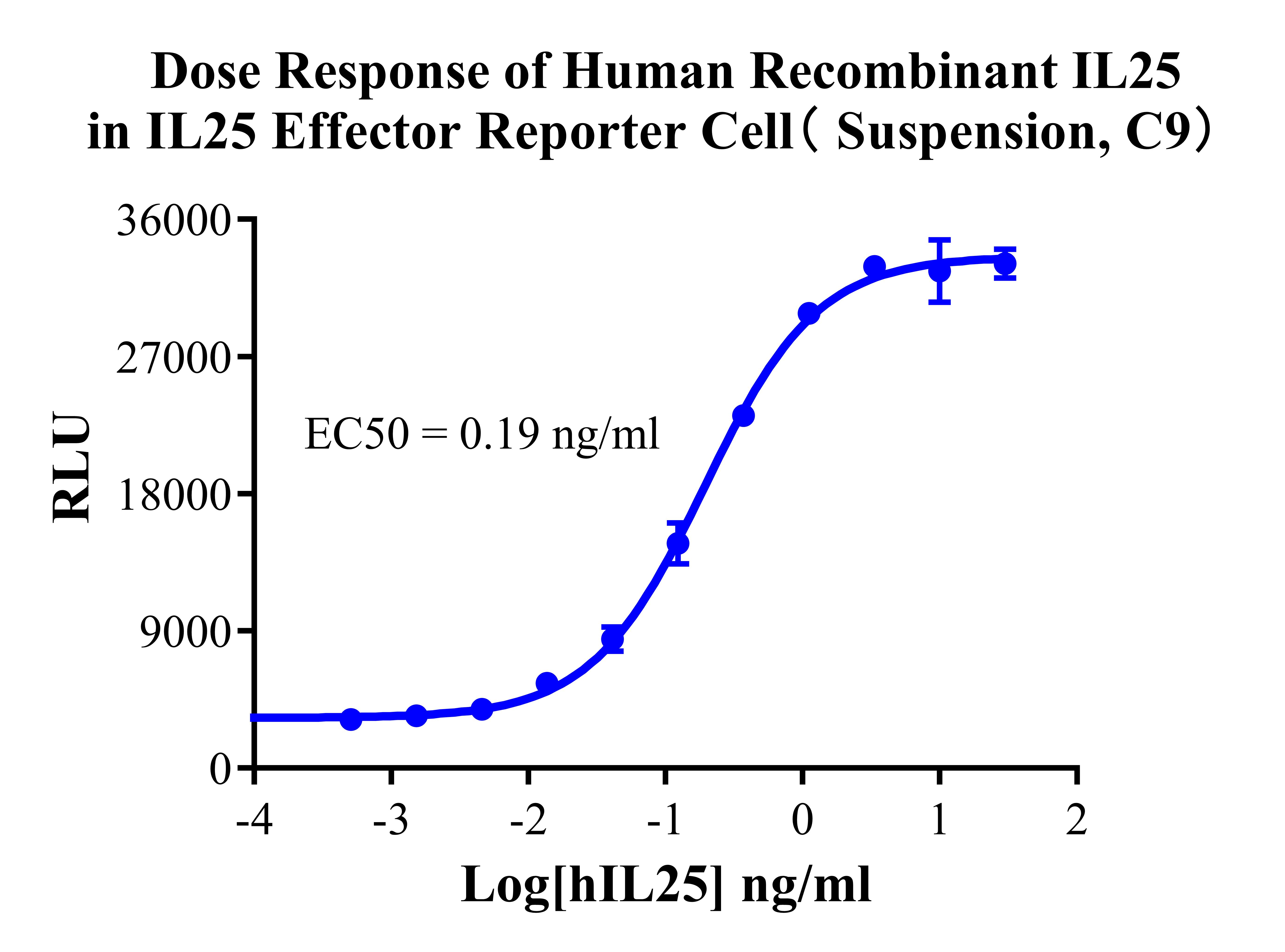 ![]() Figure 2. Recombinant IL25 Effector Reporter Cell(Suspension) stably expressing IL17RA & IL17RB. ![]() Figure 3. Dose Response of Human Recombinant IL25 in IL25 Effector Reporter Cell(Suspension, C9).