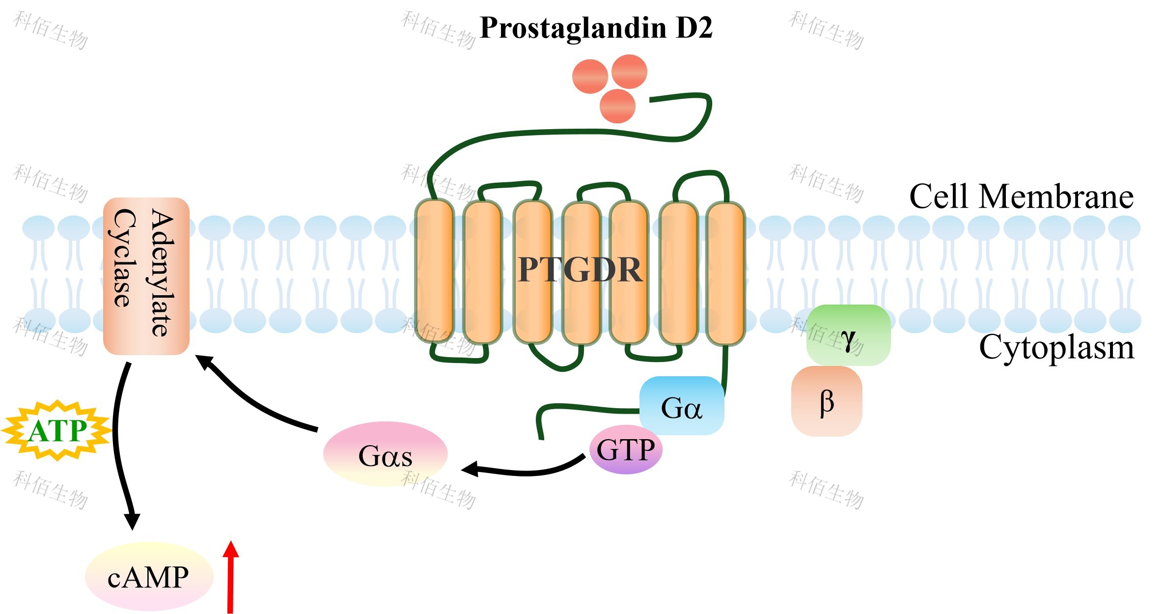 | PTGDR(Prostaglandin D2 Receptor,前列腺素 D2 受體)屬于前列腺素類受體家族, 也被稱為 DP1 受體,該蛋白屬于 GPCR 超家族,是具有七個(gè)跨膜結(jié)構(gòu)域的膜蛋白。 PTGDR 的天然配體是前列腺素 D2(PGD2),這是一種在過敏性炎癥中起關(guān)鍵介導(dǎo)作用的脂質(zhì)介質(zhì)。該受體在人體組織中廣泛表達(dá),包括脾臟、結(jié)腸、小腸、視網(wǎng)膜以及血小板膜等。功能上,PTGDR 不僅參與過敏性哮喘的氣道炎癥反應(yīng),還涉及睡眠-覺醒周期的調(diào)節(jié)、 血管舒張以及神經(jīng)系統(tǒng)保護(hù)等多種生理過程。遺傳學(xué)研究顯示,PTGDR 基因啟動(dòng)子區(qū)的多 態(tài)性會(huì)影響其轉(zhuǎn)錄效率,并與哮喘(ASRT1)的易感性顯著相關(guān)。 PTGDR 作為細(xì)胞表面受體,其信號(hào)傳導(dǎo)始于與配體 PGD2 的特異性結(jié)合。結(jié)合后,受體構(gòu)象發(fā)生改變,主要偶聯(lián)并激活刺激性 G 蛋白(Gαs) ?;罨?Gαs 亞基進(jìn)而激活細(xì)胞膜上的效應(yīng)酶(腺苷酸環(huán)化酶),催化三磷酸腺苷(ATP)轉(zhuǎn)化為環(huán)磷酸腺苷(cAMP), 導(dǎo)致細(xì)胞內(nèi) cAMP 水平迅速升高。cAMP 作為第二信使,主要激活蛋白激酶 A(PKA), 進(jìn)而磷酸化下游多種靶蛋白,調(diào)控基因表達(dá)和細(xì)胞功能。除了經(jīng)典的 cAMP-PKA 通路, PTGDR 的激活還能引起細(xì)胞內(nèi)鈣離子的動(dòng)員,導(dǎo)致胞漿鈣濃度升高。值得注意的是,這一 過程并不伴隨三磷酸肌醇(IP3)的生成,提示其鈣信號(hào)機(jī)制可能與經(jīng)典的 Gq-PLC 通路不 同。通過這些信號(hào)通路,PTGDR 介導(dǎo)了 PGD2 的多種生物學(xué)效應(yīng),包括抑制血小板聚集、 舒張血管平滑肌、以及調(diào)節(jié)免疫細(xì)胞(如樹突狀細(xì)胞和嗜酸性粒細(xì)胞)的功能。 |
