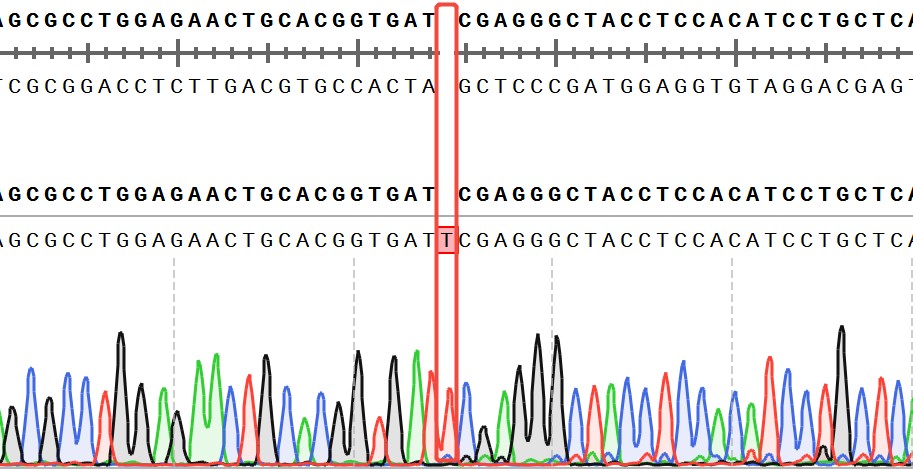 ![]() Figure 1. WB of IGF1R KO HEK293. ![]() Figure 2.Sanger of IGF1R KO HEK293, IGF1R(NM_000875):c.164-165insT/IGF1R:p.I55Ifs*90. |