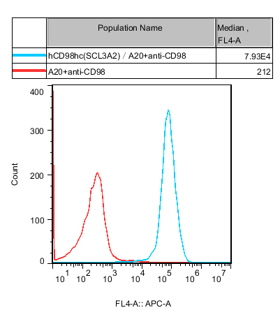 Figure 1. Recombinant hCD98hc(SLC3A2)/A20 stably expressing hCD98hc(SLC3A2).