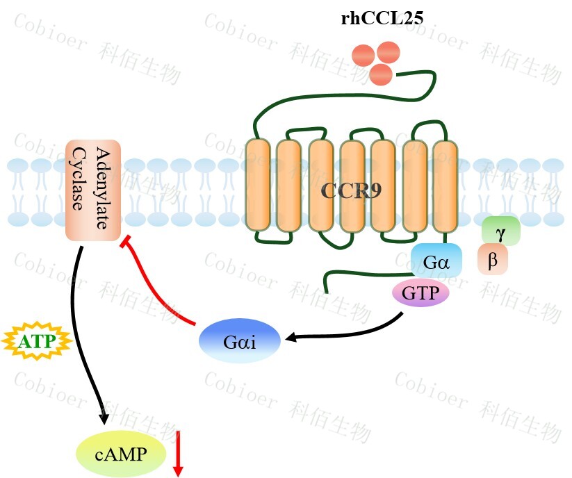 cAMP 在 G 蛋白偶聯(lián)受體(GPCR)信號轉(zhuǎn)導(dǎo)中是一種關(guān)鍵的第二信使。當配體結(jié)合到 GPCR,構(gòu)象發(fā)生變化,激活受體接著激活 G 蛋白,Gi 的激活導(dǎo)致腺苷酸環(huán)化酶調(diào)控 cAMP 的下調(diào)。CCR9 藥靶模型很好的模擬了體內(nèi) CCR9 的信號轉(zhuǎn)導(dǎo)過程,原理見下圖所示。通路。![]() Figure 1. CCR9 CHO 細胞模型原理圖 |