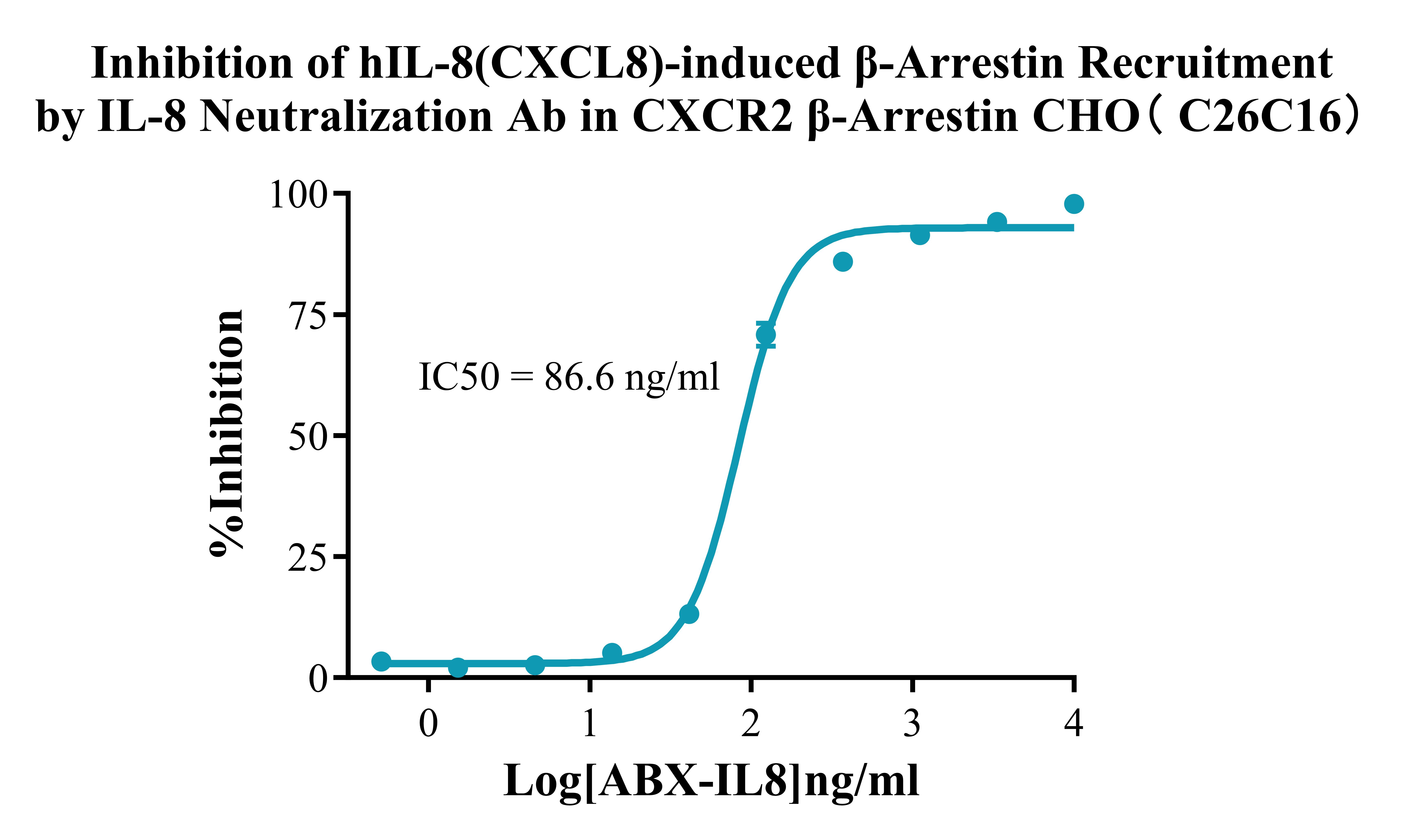 Figure 4.Inhibition of hlL-8(CXCL8)-induced β-Arrestin Recruitment by IL-8 Neutralization Ab in CXCR2 β-Arrestin CHO(C26C16). |