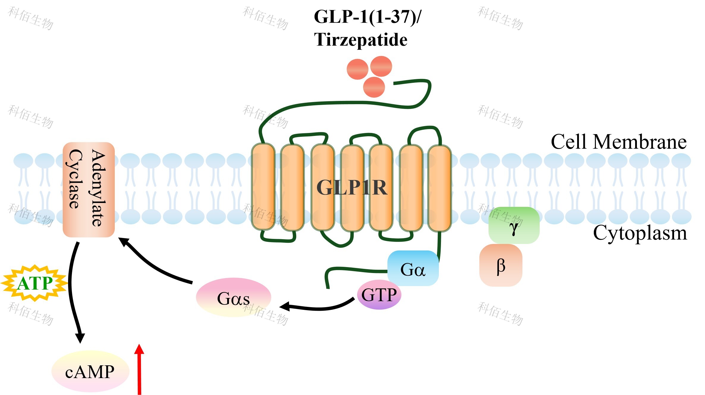 | GLP-1R 與其他四種胰高血糖素受體(GCGR、GLP-2R、GIPR 和 GHRHR)一起屬于 促胰液素 (B1 類) GPCR 家族,其內(nèi)源性配體是肽激素。 B1 類 GPCRs 在 N 端具有一個較 大的、結(jié)構(gòu)保守的胞外結(jié)構(gòu)域(ECD),由 120-160 個殘基組成,形成三層 α-β-β-α 折疊, 并由三個層間二硫鍵穩(wěn)定。 GLP-1R 的內(nèi)源性配體是 GLP-1 (7-36)和 GLP-1 (7-37),它們是胰高血糖素原翻 譯后加工的產(chǎn)物。GLP-1R 主要通過 Gαs/cAMP 通路發(fā)出信號,直接導(dǎo)致葡萄糖誘導(dǎo)的胰 島素顆粒分泌;但有證據(jù)表明 GLP-1R 可與 Gαq 和其他 G 蛋白偶聯(lián);GLP -1R 激活后,C 末端發(fā)生磷酸化,進(jìn)一步募集β-抑制蛋白,導(dǎo)致受體內(nèi)化和脫敏。 |