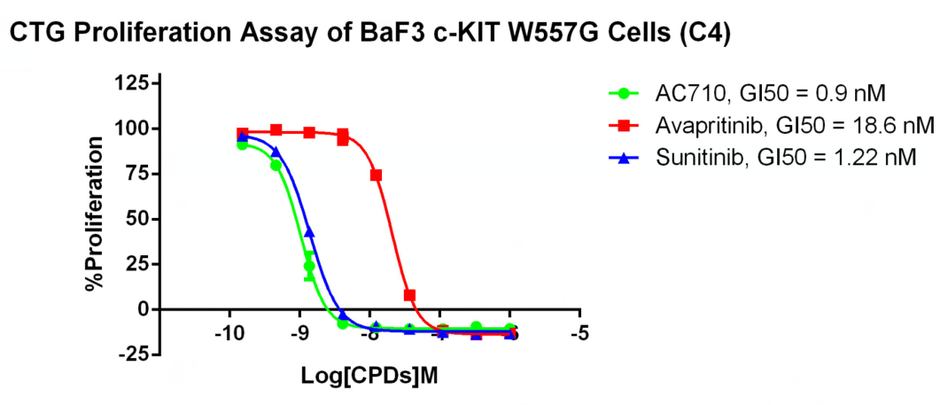 Figure 3. CTG Proliferation Assay of BaF3 c-KIT W557G Cells (C4). |
