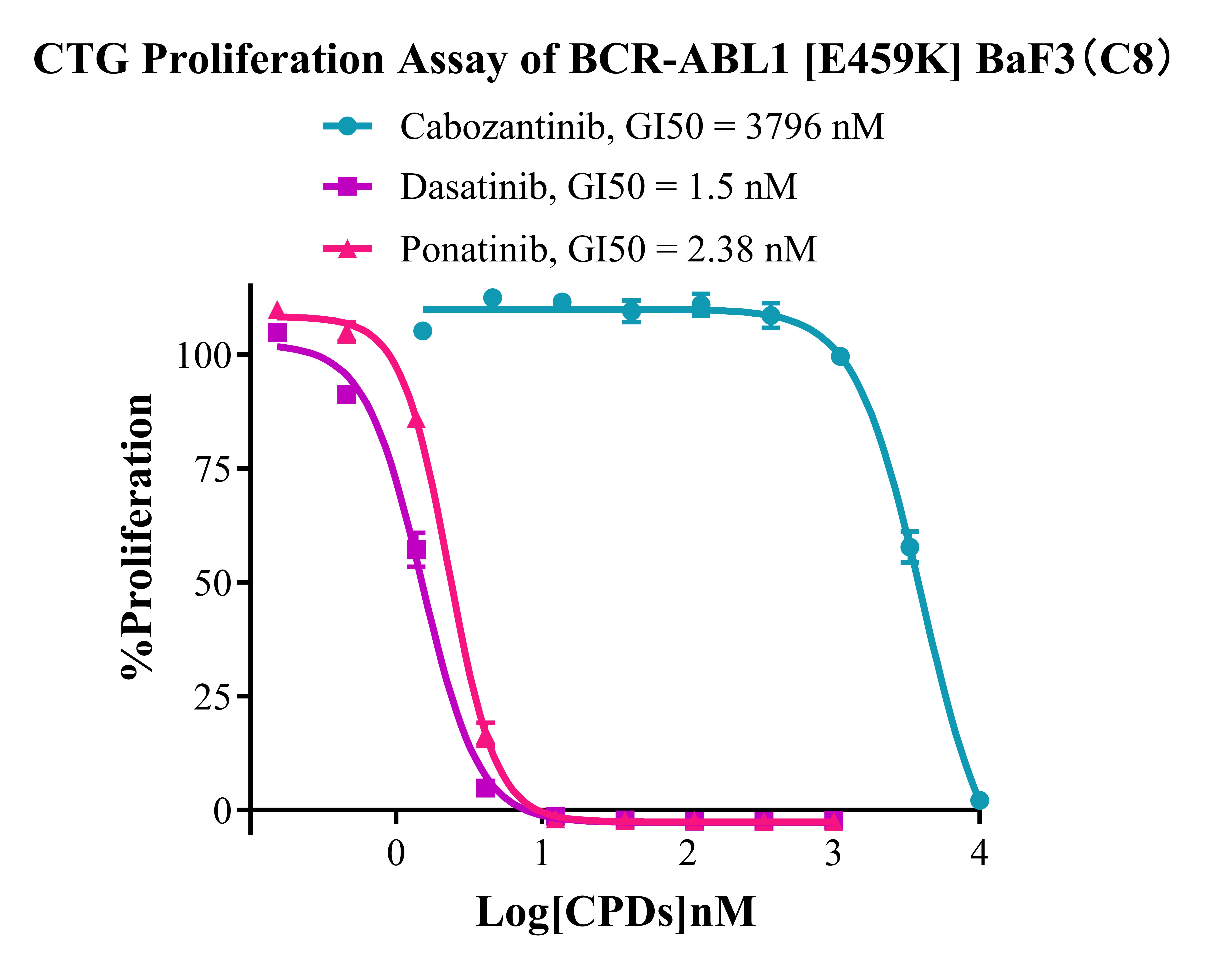 Figure 5. CTG Proliferation Assay of BCR-ABL1 [E459K] BaF3(C8). |