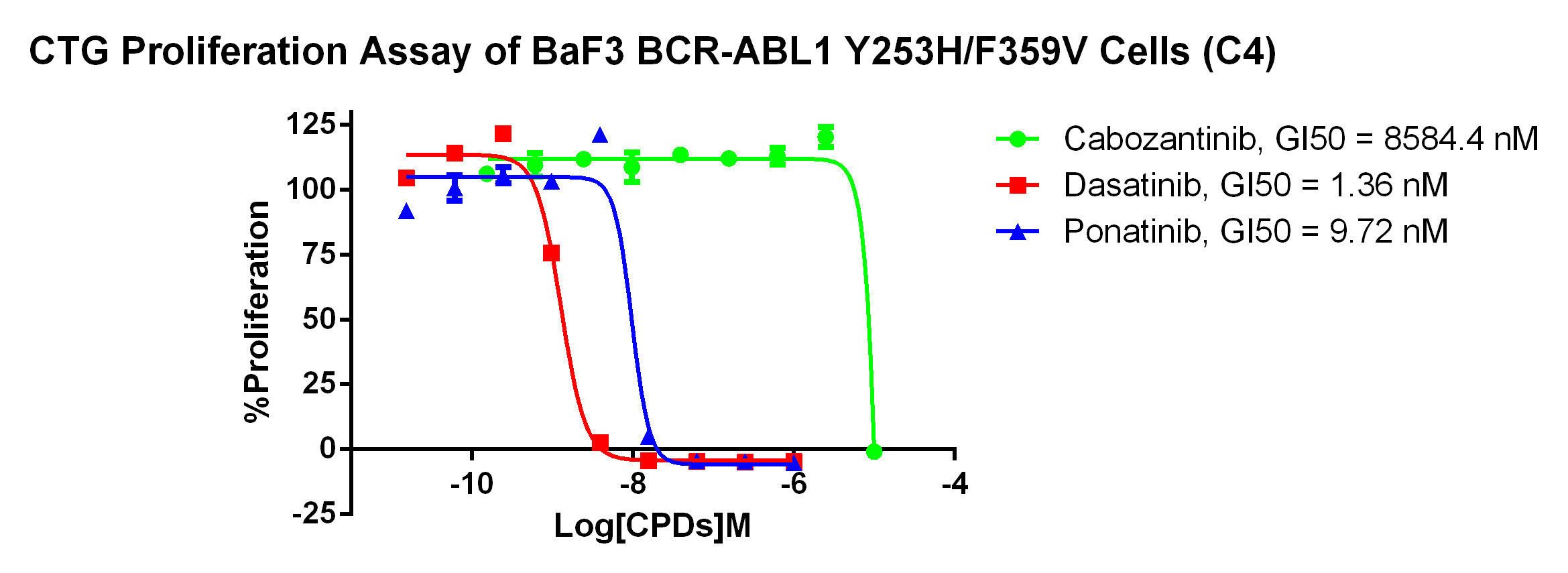 Figure 4. CTG Proliferation Assay of BaF3 BCR-ABL1 Y253H/F359V Cells (C4). |