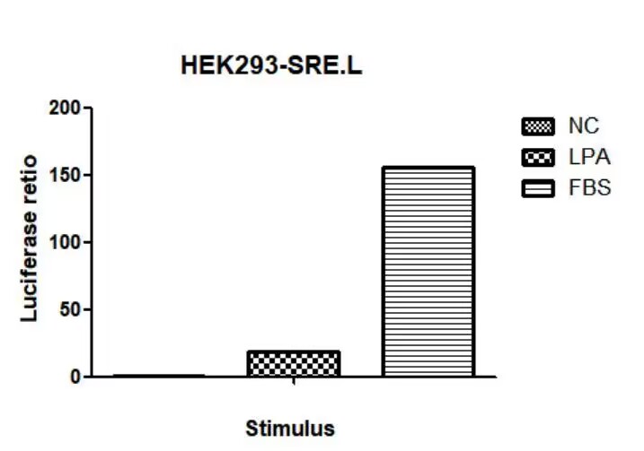 | The SRE Reporter – HEK293 cell line is designed for monitoring the activity of the MAPK/ERK signaling pathway. The SRE Reporter – HEK293 cell line contains a firefly luciferase gene under the control of SRE responsive elements stably integrated into HEK293 cells, resulting in an ERK pathway-responsive reporter cell line. | |