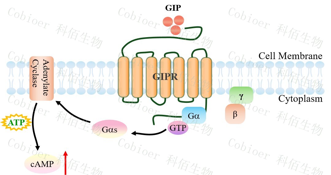 葡萄糖依賴性胰島素促泌多肽(又稱抑胃肽,GIP)、胰高血糖素樣肽-1(GLP-1)和胰高血糖素(GCG)是負責(zé)葡萄糖穩(wěn)態(tài)的肽激素。它們的同源受體 GIPR、GLP-1R 和GCGR 屬于 B1 類 G 蛋白偶聯(lián)受體 (GPCR) 家族。胃抑制多肽受體(GIPR)是 GIP 的受體,是一種具有 7 個跨膜結(jié)構(gòu)域的 G 蛋白偶聯(lián)受體。它與 GIP 激素結(jié)合,以葡萄糖誘導(dǎo)的方式增強胰腺 β 細胞胰島素的合成和分泌。胰腺 β 細胞上的 GIPR 在信號級聯(lián)中起著關(guān)鍵作用,導(dǎo)致血糖水平升高時胰島素釋放。