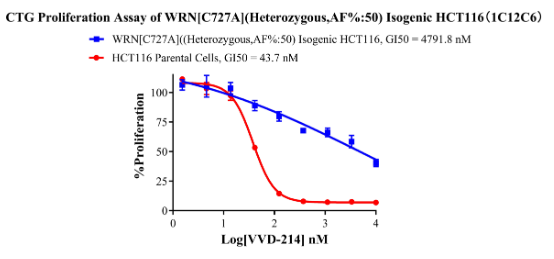 Figure 6. CTG Proliferation Assay of WRN[C727A](Heterozygous,AF%:50) Isogenic HCT116(1C12C6).