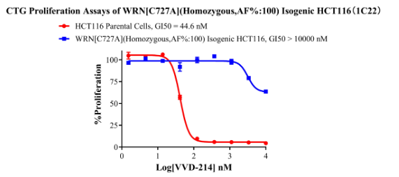 Figure 8. CTG Proliferation Assays of WRN[C727A](Homozygous,AF%:100) Isogenic HCT116(1C22).