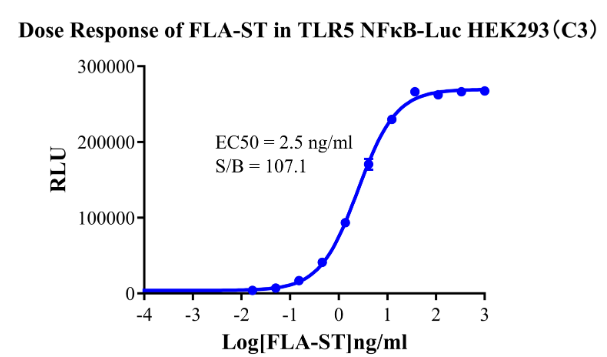 Figure6. Detect Luciferase assay by Ultra Luciferase Detection Kit CBPH0001(we strongly suggest to purchase from Cobioer). Dose response of FLA-ST in TLR5 NFκB-Luc HEK293(C3).