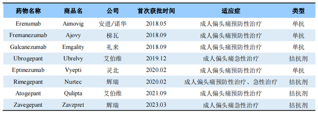 2018年以來,已有多款靶向降鈣素基因相關(guān)肽(CGRP)或其受體的藥物獲批,用于偏頭痛的治療或預(yù)防,這標志著偏頭痛治療新時代的到來。與傳統(tǒng)療法相比,CGRP相關(guān)療法具有顯著的改進,它們特異性地作用于三叉神經(jīng)疼痛系統(tǒng),且很少或沒有不良反應(yīng)。Ubrogepant等CGRP受體拮抗劑可以有效緩解偏頭痛的急性發(fā)作,而Eptinezumab、Fremanezumab和Erenumab等靶向CGRP或CALCRL的單克隆抗體可以有效預(yù)防偏頭痛發(fā)作。目前,全球已批準8款CGRP/CGRPR類偏頭痛藥物上市,國內(nèi)僅君實生物和博安生物有所布局。其中君實生物的CGRP單抗JS010于2022年12月30日申報臨床。隨著患者需求不斷提高及創(chuàng)新藥物相繼面世的推動下,預(yù)計2024年偏頭痛領(lǐng)域市場規(guī)??沙?10億美元,未來CGRP類藥物市場空間潛力巨大。
