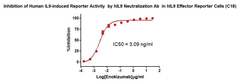 Figure 2. Inhibition of Human lL9-induced Reporter Activity by hlL9 Neutralization Ab in hIL9 Effector Reporter Cells (C18)