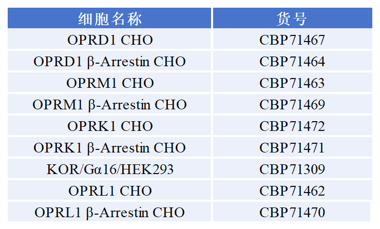 針對(duì)OPR及相關(guān)信號(hào)通路藥物的檢測(cè),科佰生物及時(shí)開(kāi)發(fā)了OPRM1,OPRD1,OPRK1,及OPRL1等細(xì)胞模型,助力OPR藥物的研發(fā)。